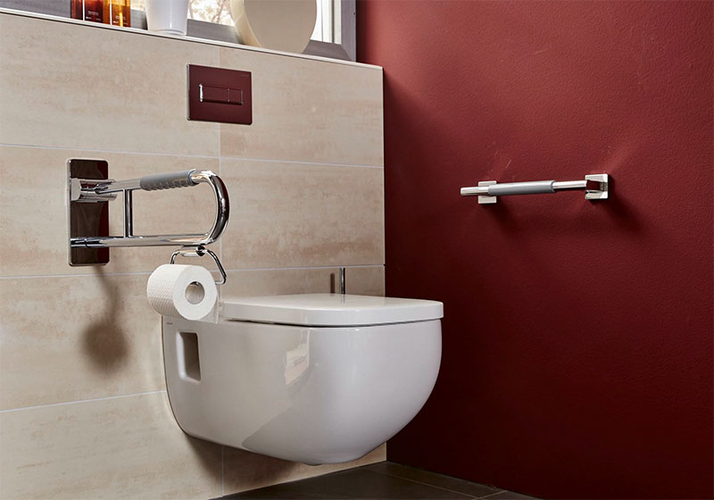 - Halte-, Stütz- und Klappgriffe, benutzerfreundliche Bedienhebel an den Armaturen